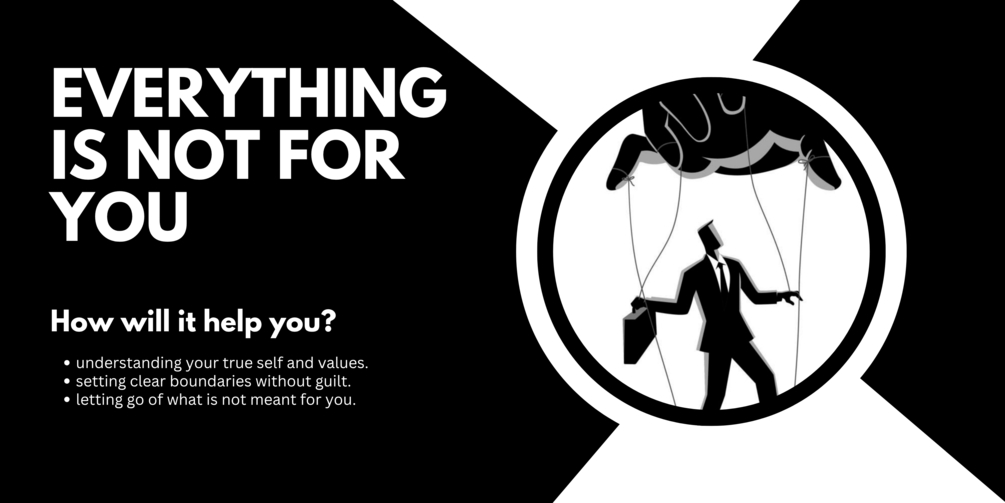 "Everything Is Not for You" is a practical and honest guide to help you reclaim your energy, set healthy boundaries, and stop chasing what’s not meant for you.